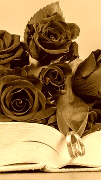 Edytor tapety: Róże i obrączki na książce