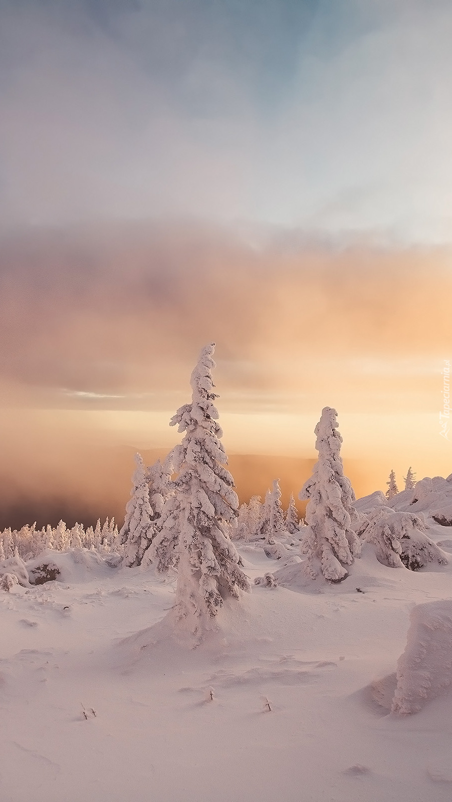Edytor tapety: Zasypane śniegiem drzewa
