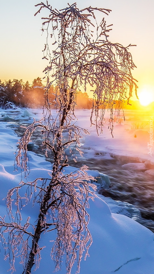 Edytor tapety: Oszronione drzewo nad rzeką