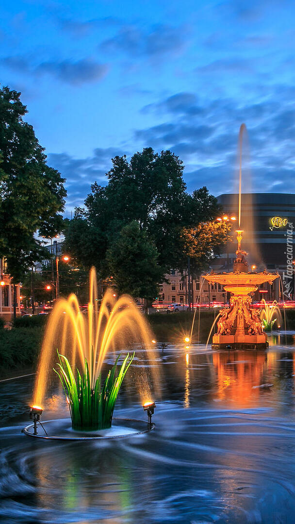 Edytor tapety: Oświetlone fontanny w Arnhem