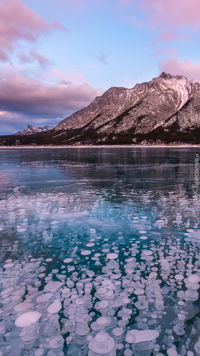 Edytor tapety: Góry nad zamarzniętym jeziorem Abraham