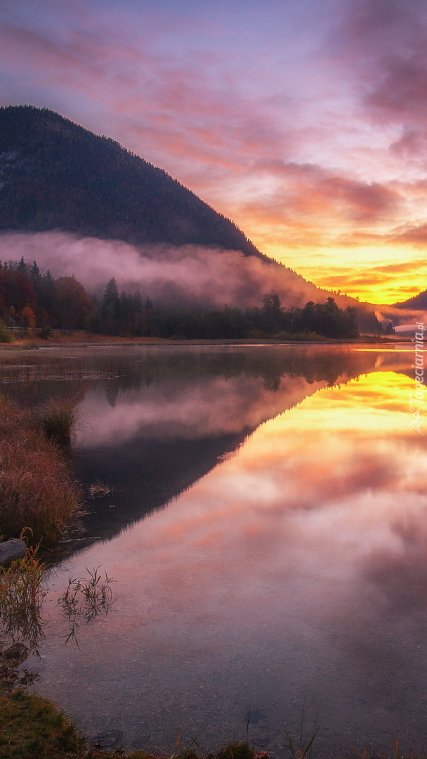 Edytor tapety: Zachód słońca nad górskim jeziorem