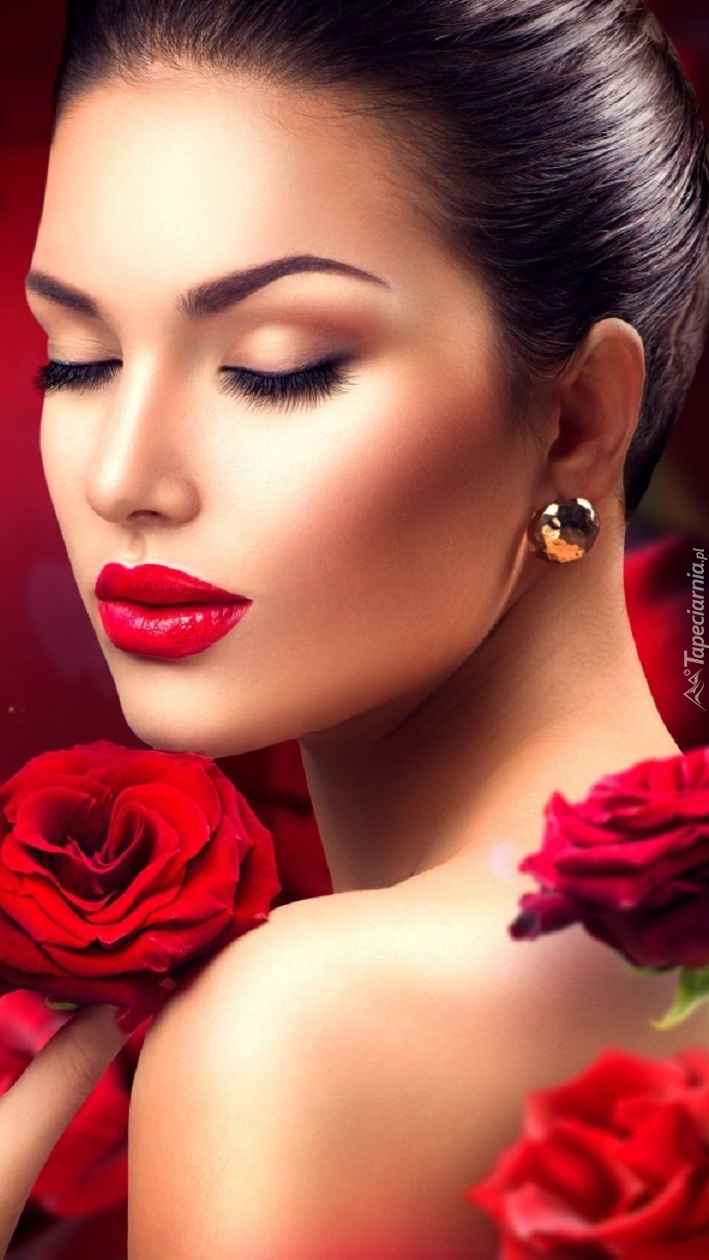 Edytor tapety: Kobieta z czerwonymi różami