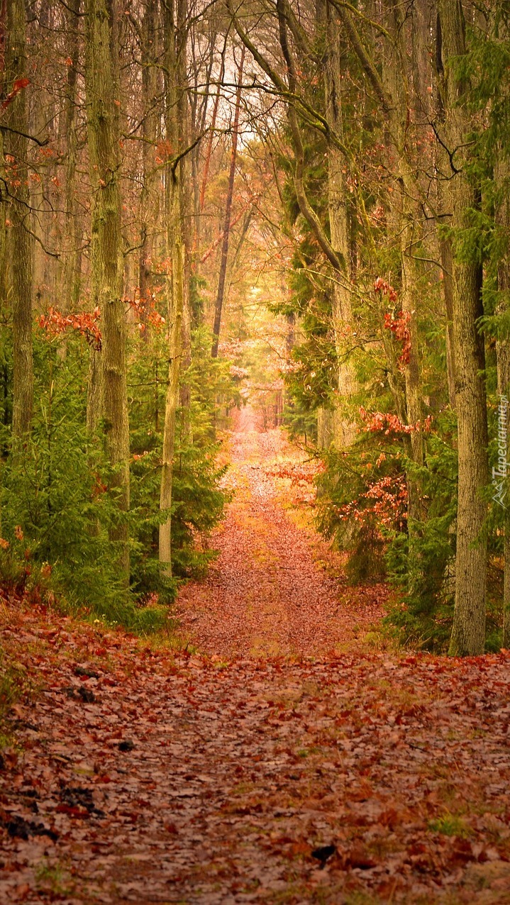 Edytor tapety: Opadłe liście na leśnej ścieżce