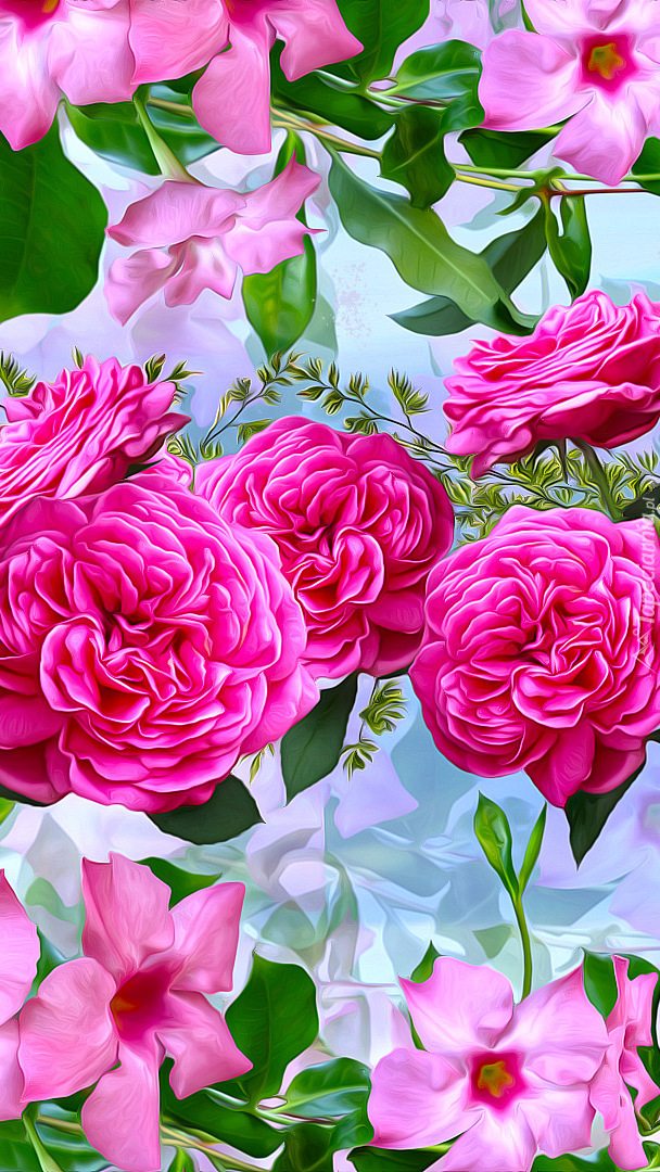 Edytor tapety: Mandewilla i róże w grafice