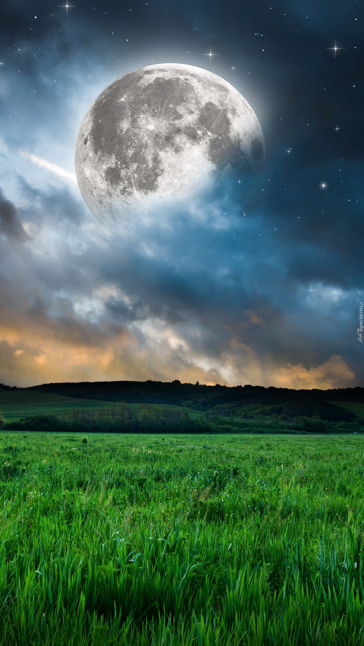 Edytor tapety: Księżyc nad łąką