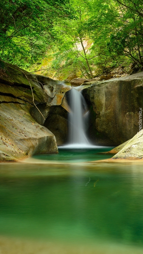 Edytor tapety: Drzewa nad skalnym wodospadem