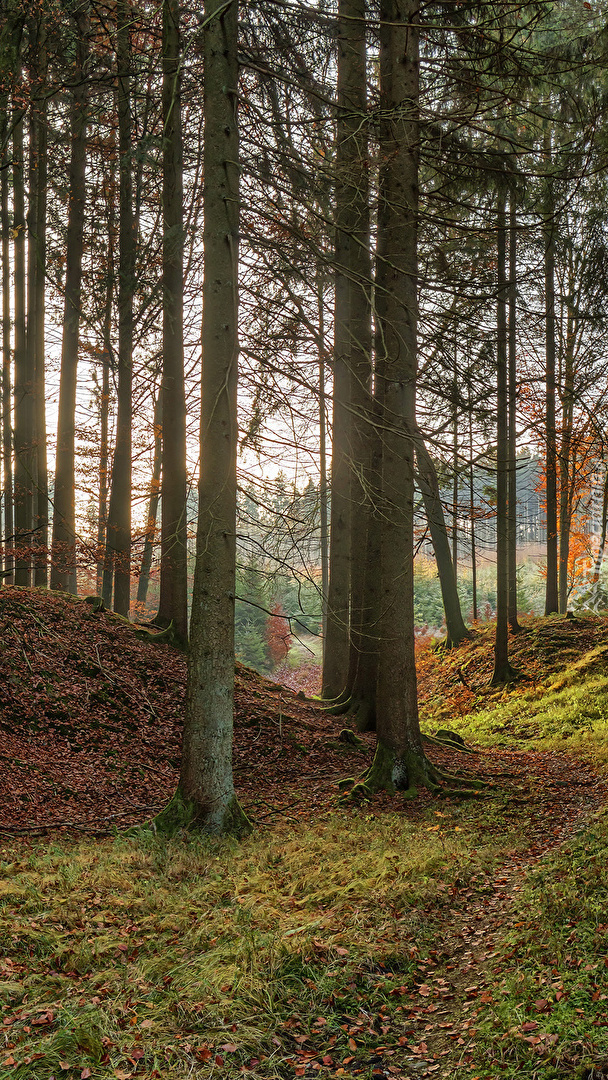 Edytor tapety: Wysokie drzewa przy leśnej ścieżce