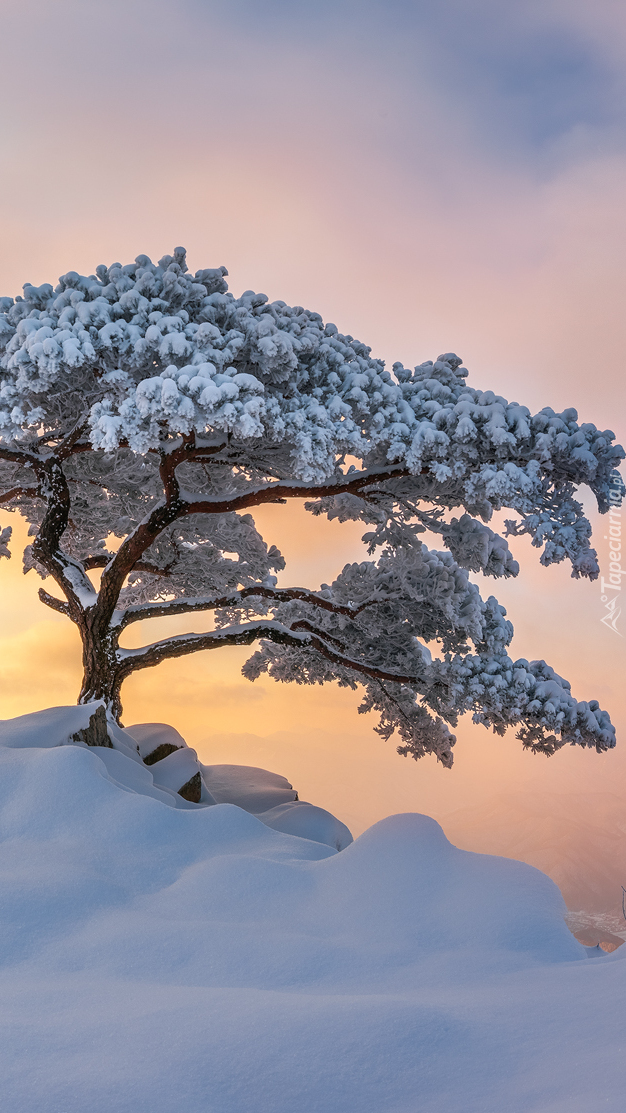 Edytor tapety: Ośnieżona sosna na skale