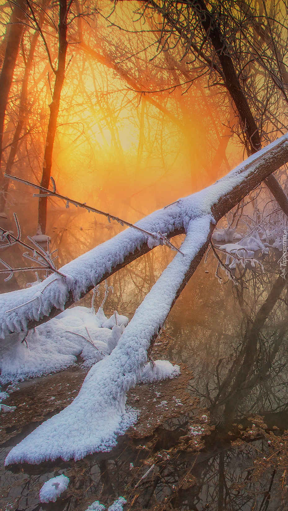 Edytor tapety: Ośnieżone gałęzie w rzece