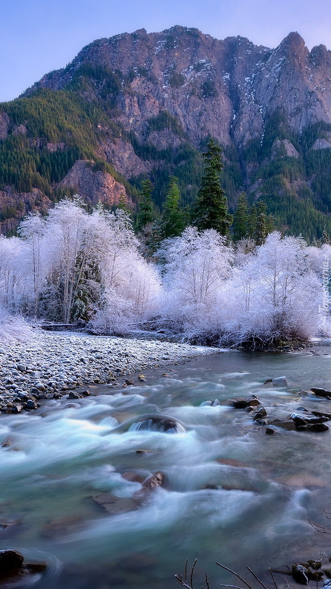 Edytor tapety: Oszronione drzewa nad rzeką