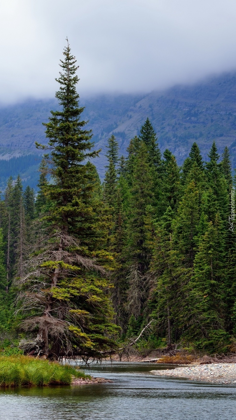 Edytor tapety: Las iglasty nad rzeką