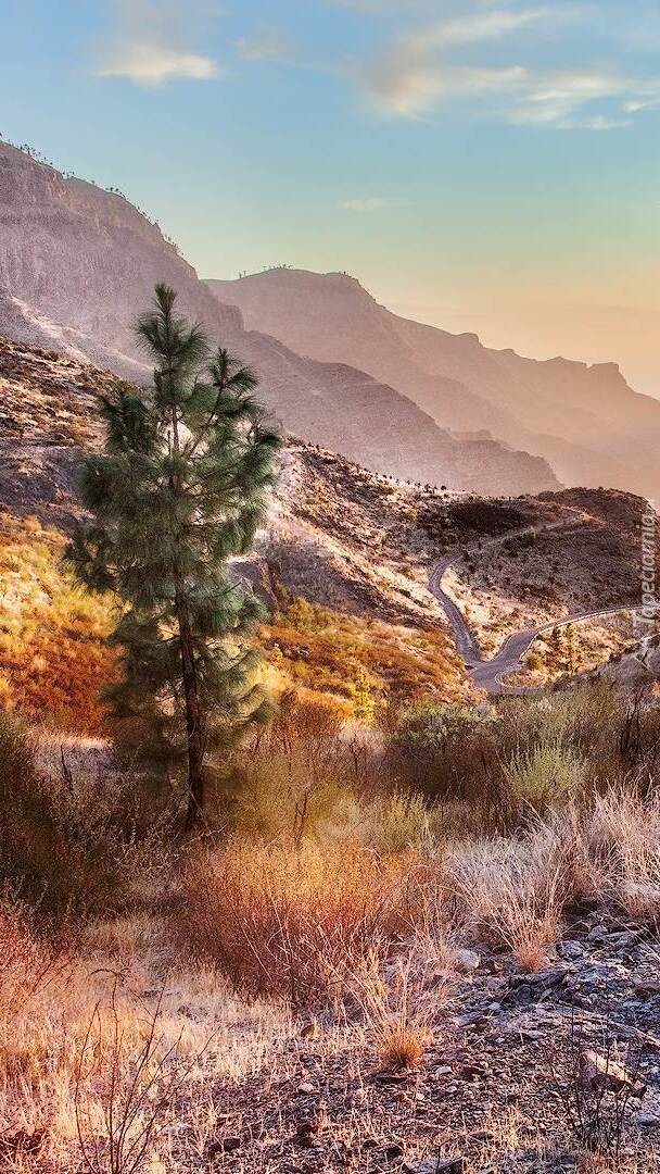 Edytor tapety: Drzewo na tle gór