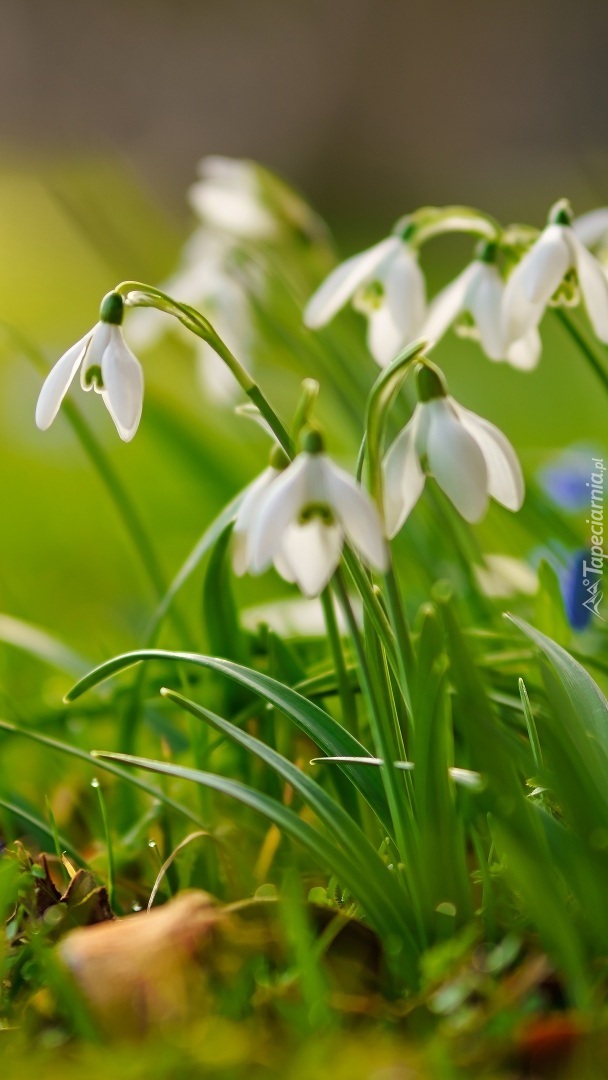Edytor tapety: Białe przebiśniegi w trawie