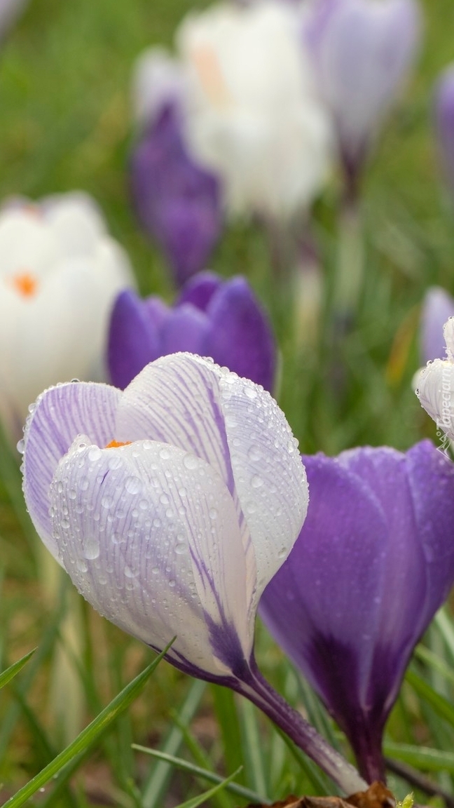 Edytor tapety: Krokusy w kroplach deszczu