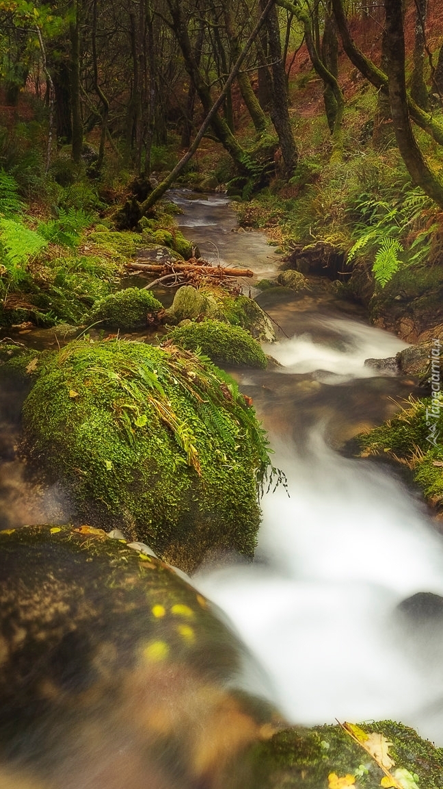 Edytor tapety: Leśny potok na omszałych kamieniach