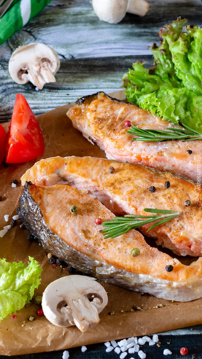 Edytor tapety: Ryba smażona obok warzyw