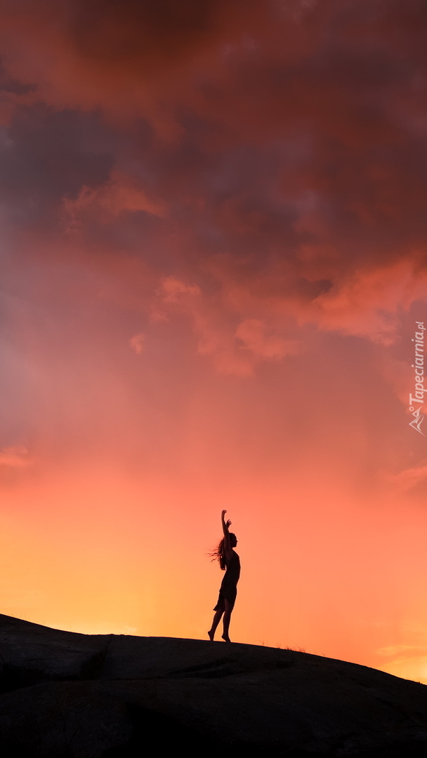 Edytor tapety: Kobieta na tle zachodzącego słońca