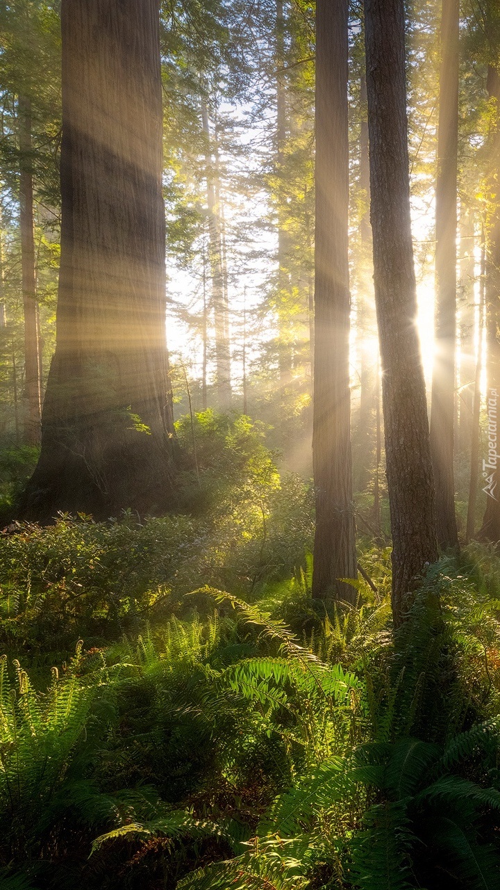 Edytor tapety: Las w promieniach słońca