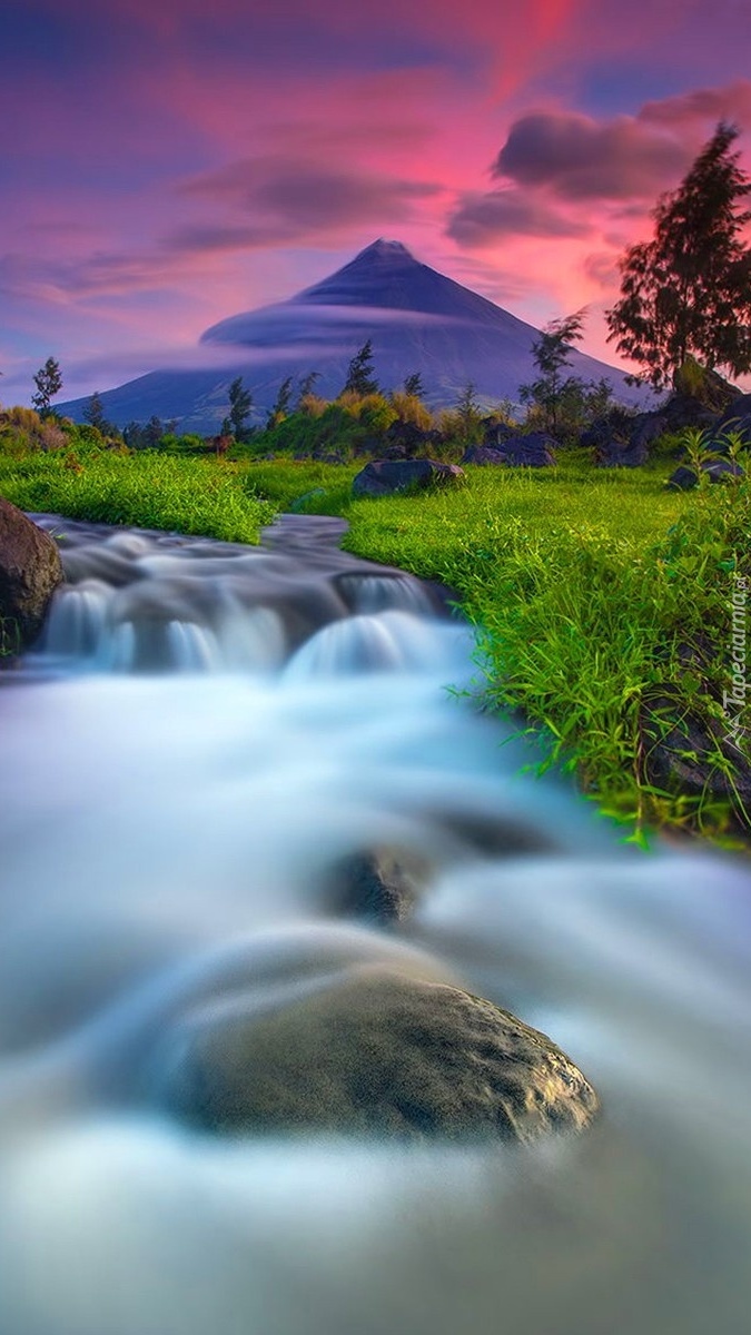 Edytor tapety: Górski potok o zachodzie słońca