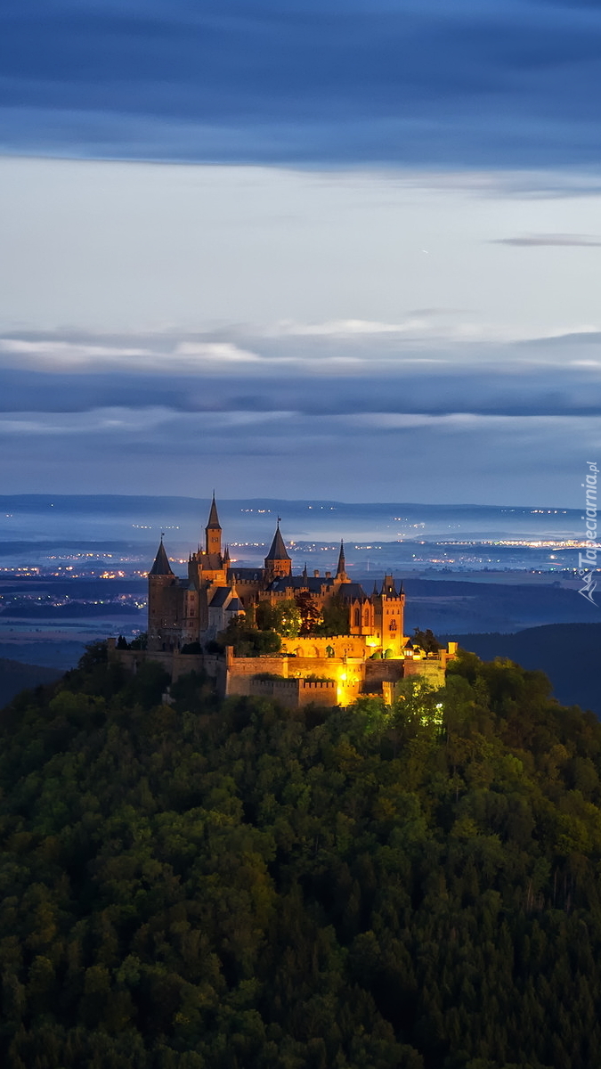 Edytor tapety: Oświetlony zamek Hohenzollern