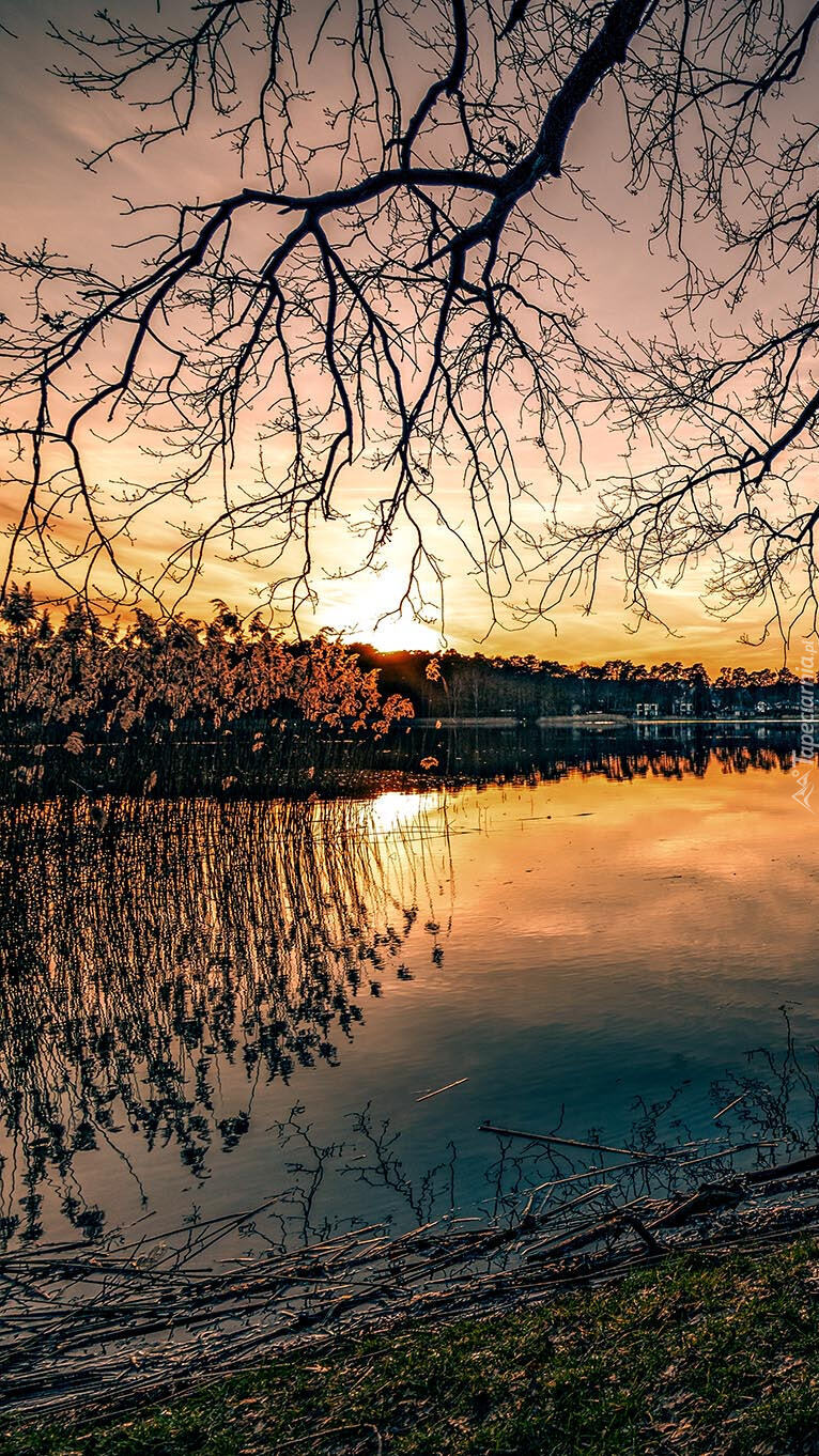 Edytor tapety: Zachód słońca nad jeziorem