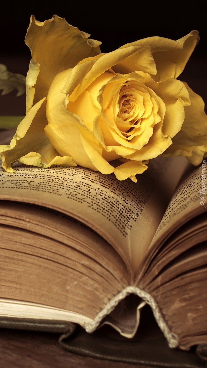 Edytor tapety: Żółta róża na otwartej książce