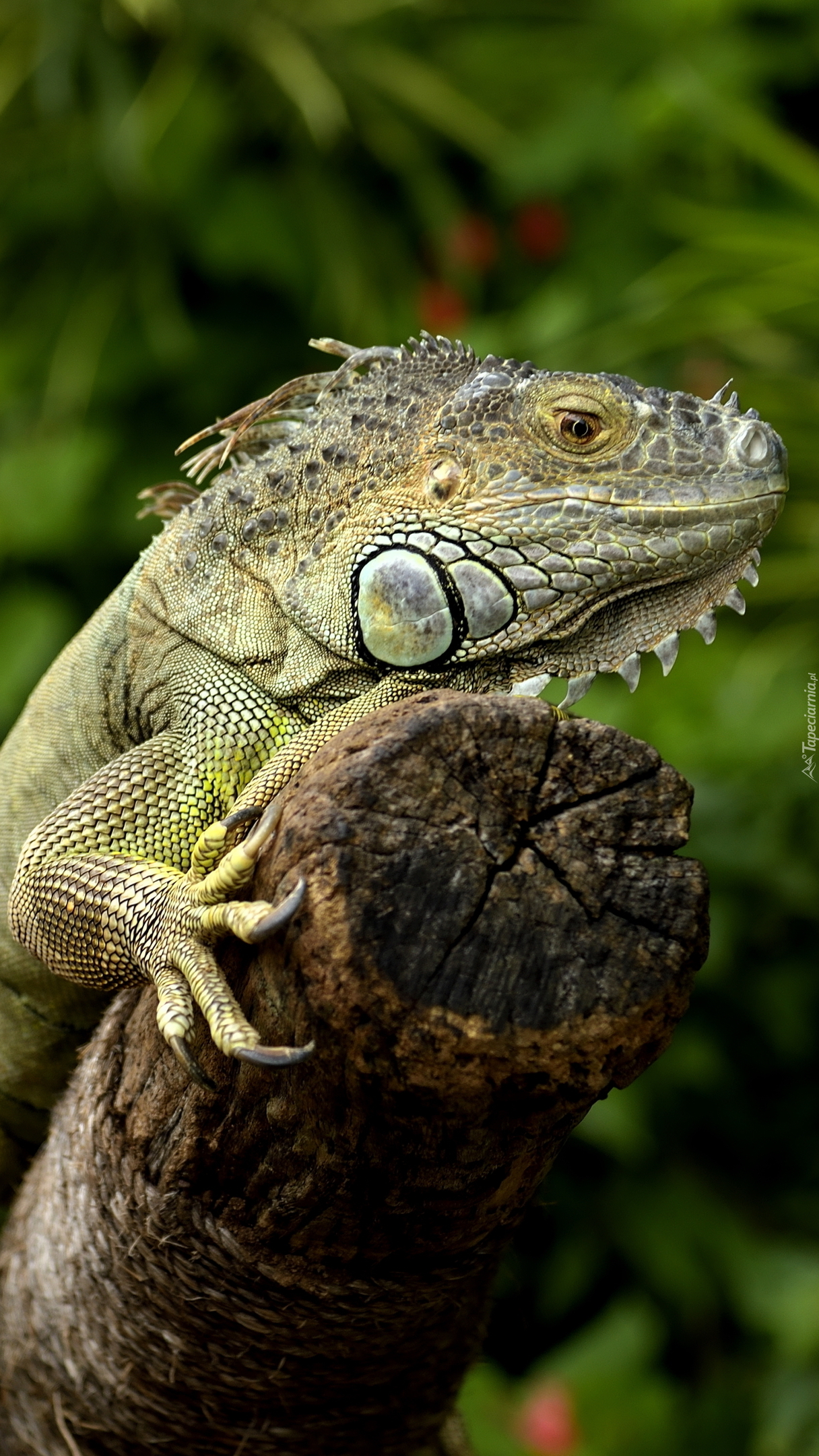Edytor tapety: Legwan zielony na pniu