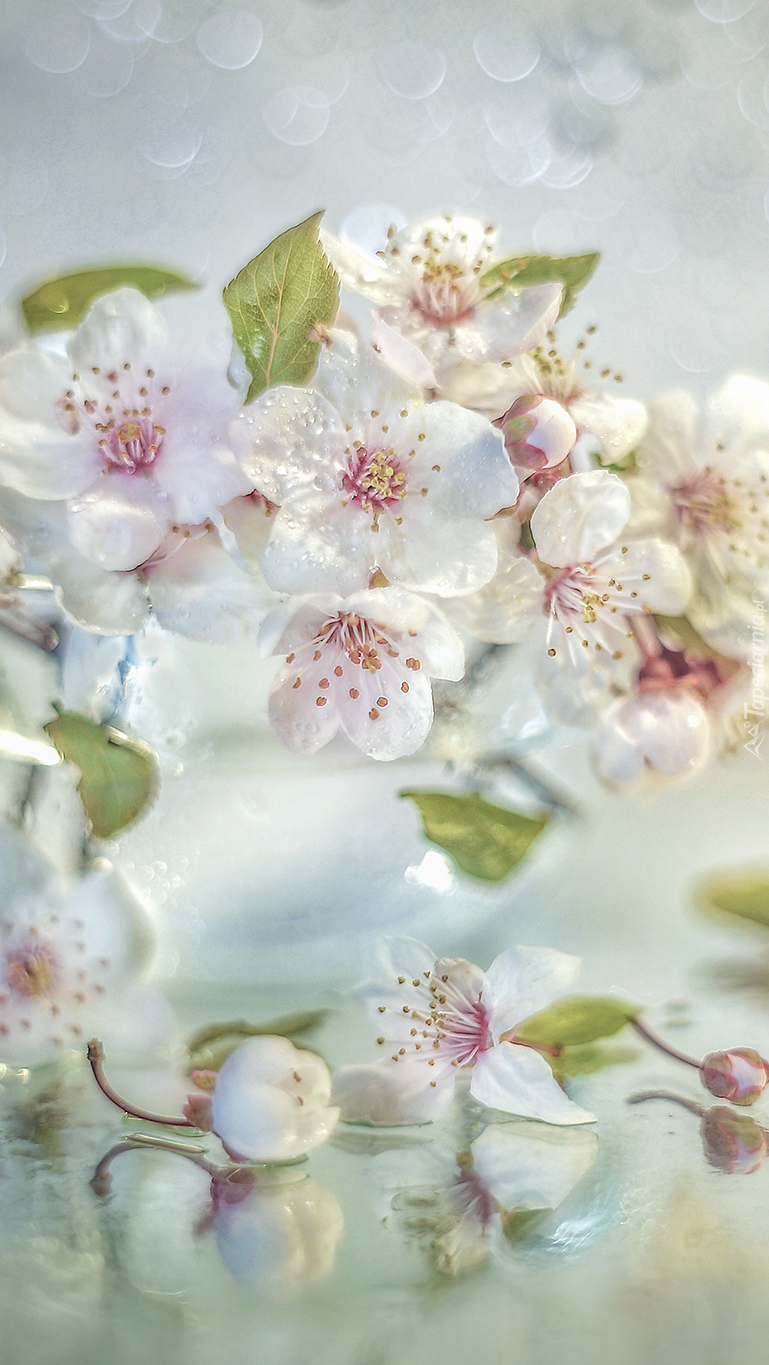 Edytor tapety: Gałązki drzewa owocowego w wazoniku