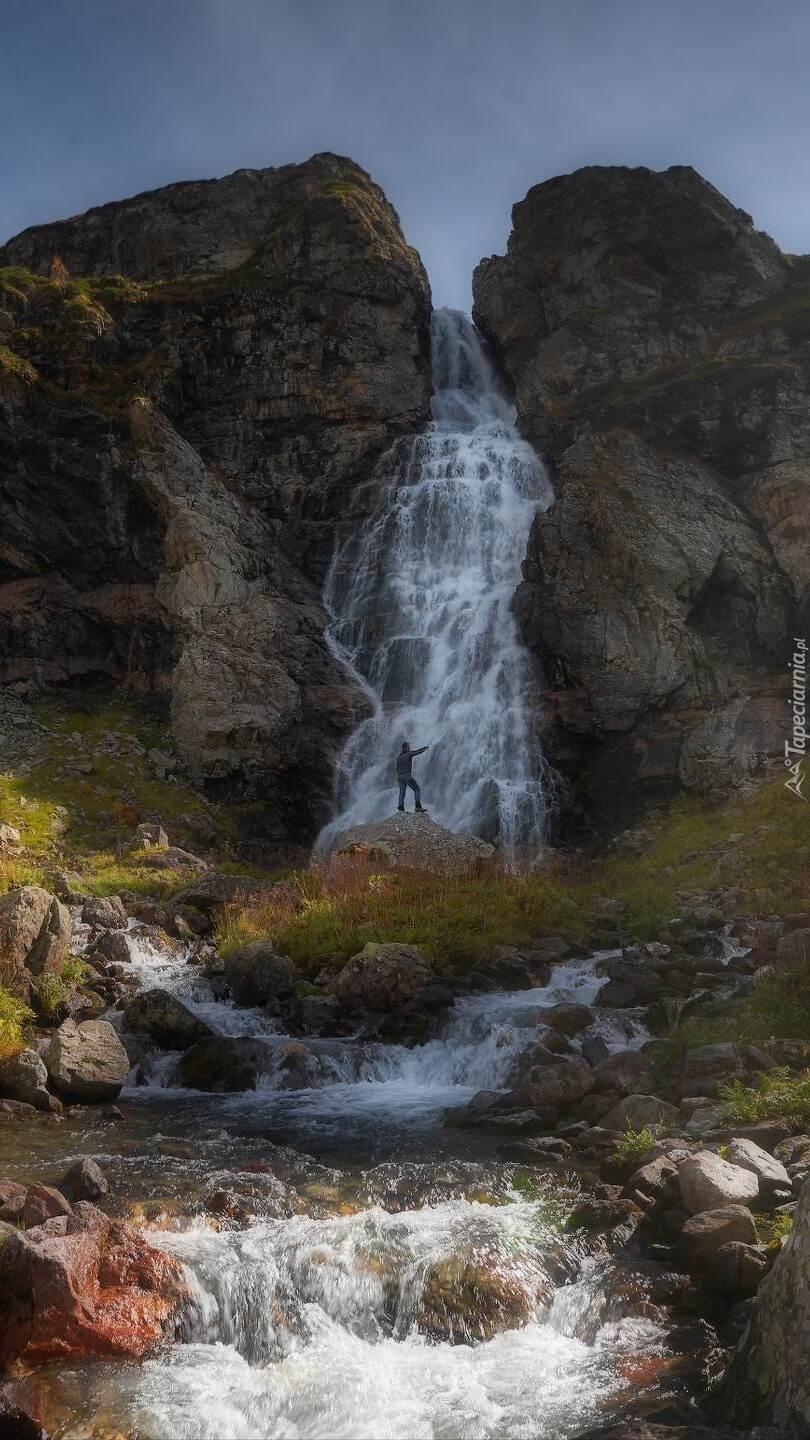 Edytor tapety: Człowiek przy wodospadzie