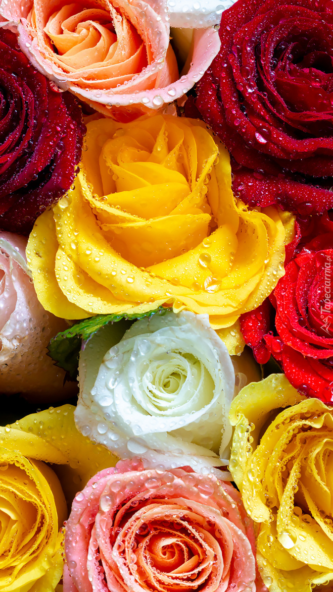 Edytor tapety: Zroszone kolorowe róże