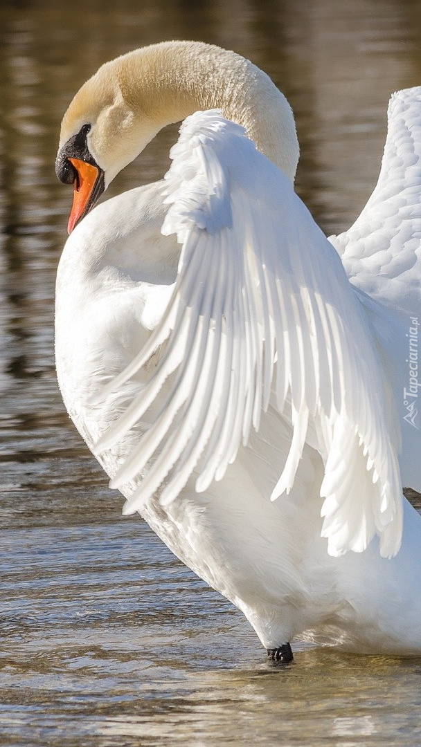 Edytor tapety: Łabędź z rozpostartymi skrzydłami