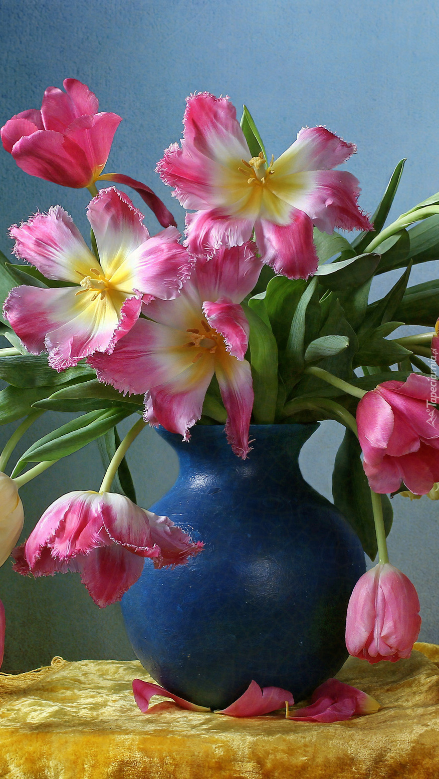 Edytor tapety: Kwiaty w niebieskim wazonie