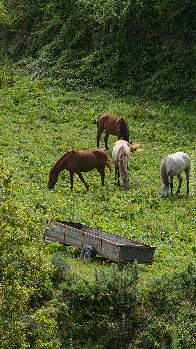 Edytor tapety: Cztery konie na łące