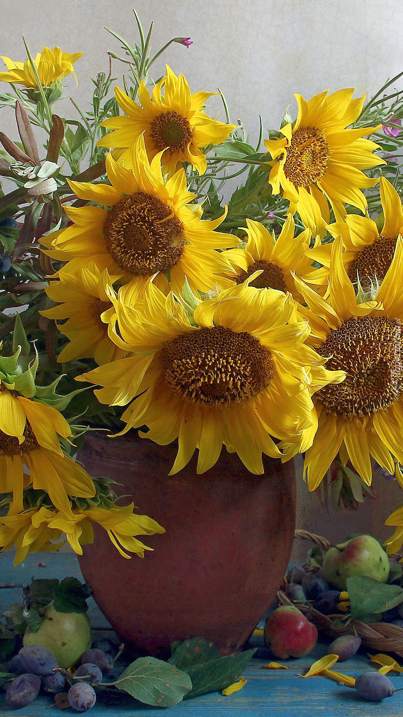 Edytor tapety: Słoneczniki w wazonie