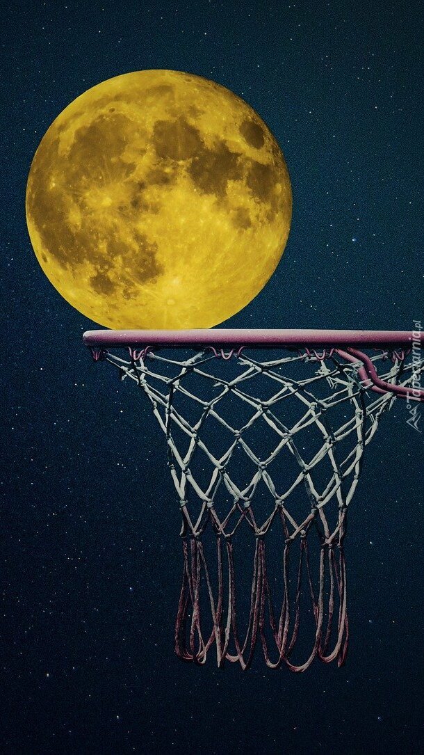 Edytor tapety: Księżyc nad koszem do koszykówki