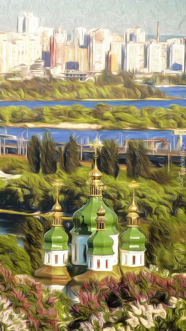 Edytor tapety: Cerkiew i domy w grafice