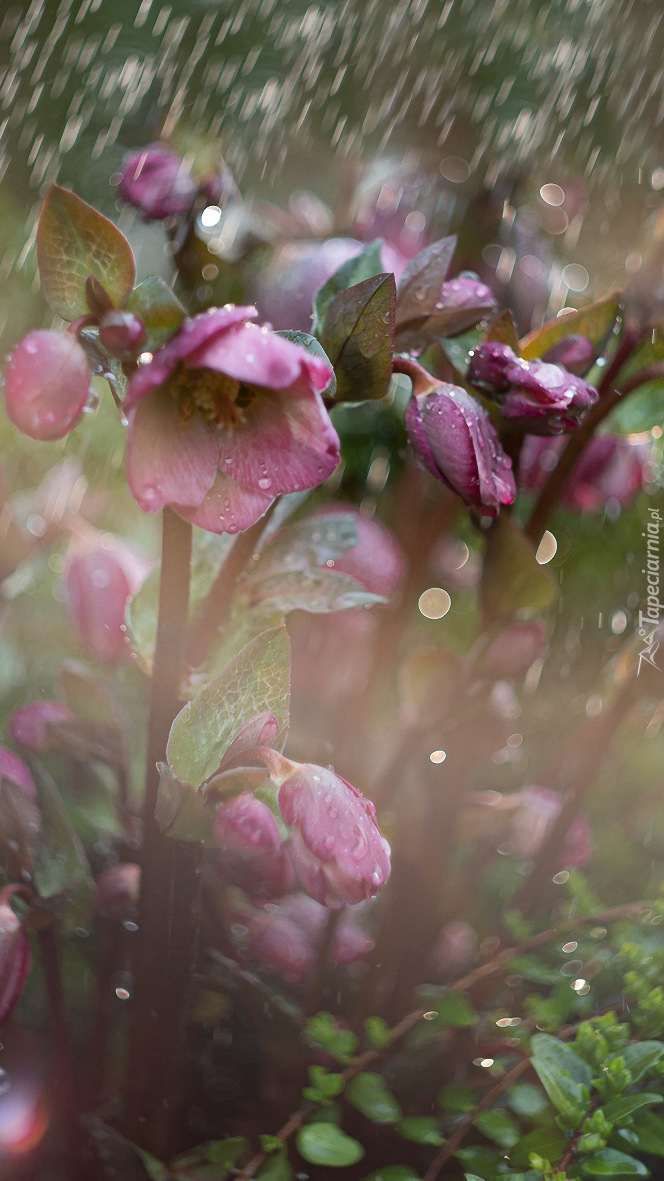 Edytor tapety: Kwiaty ciemiernika w deszczu
