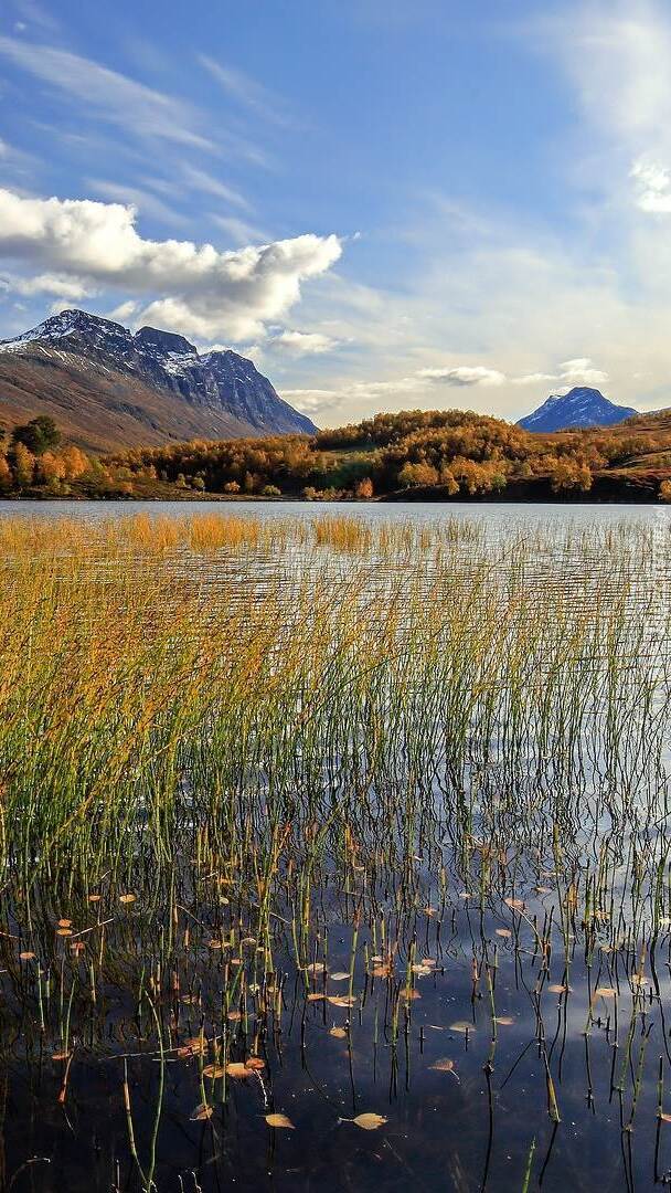 Edytor tapety: Pożółkłe trawy w jeziorze