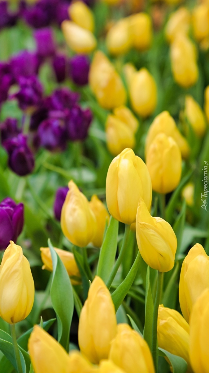 Edytor tapety: Żółte i fioletowe tulipany