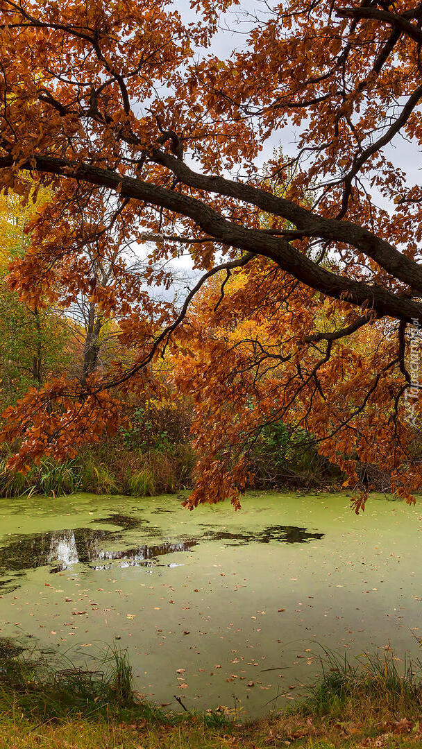 Edytor tapety: Pochylone drzewo nad stawem