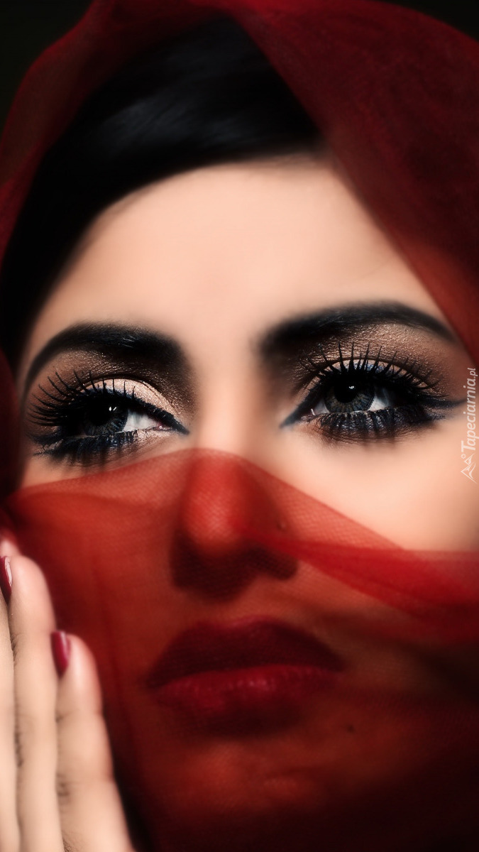 Edytor tapety: Twarz kobiety zasłonięta szyfonową chustą