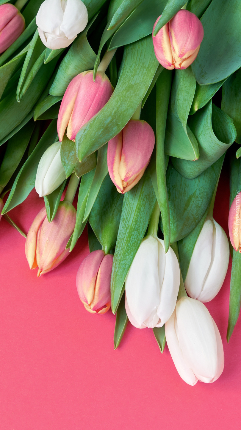 Edytor tapety: Tulipany na różowym tle