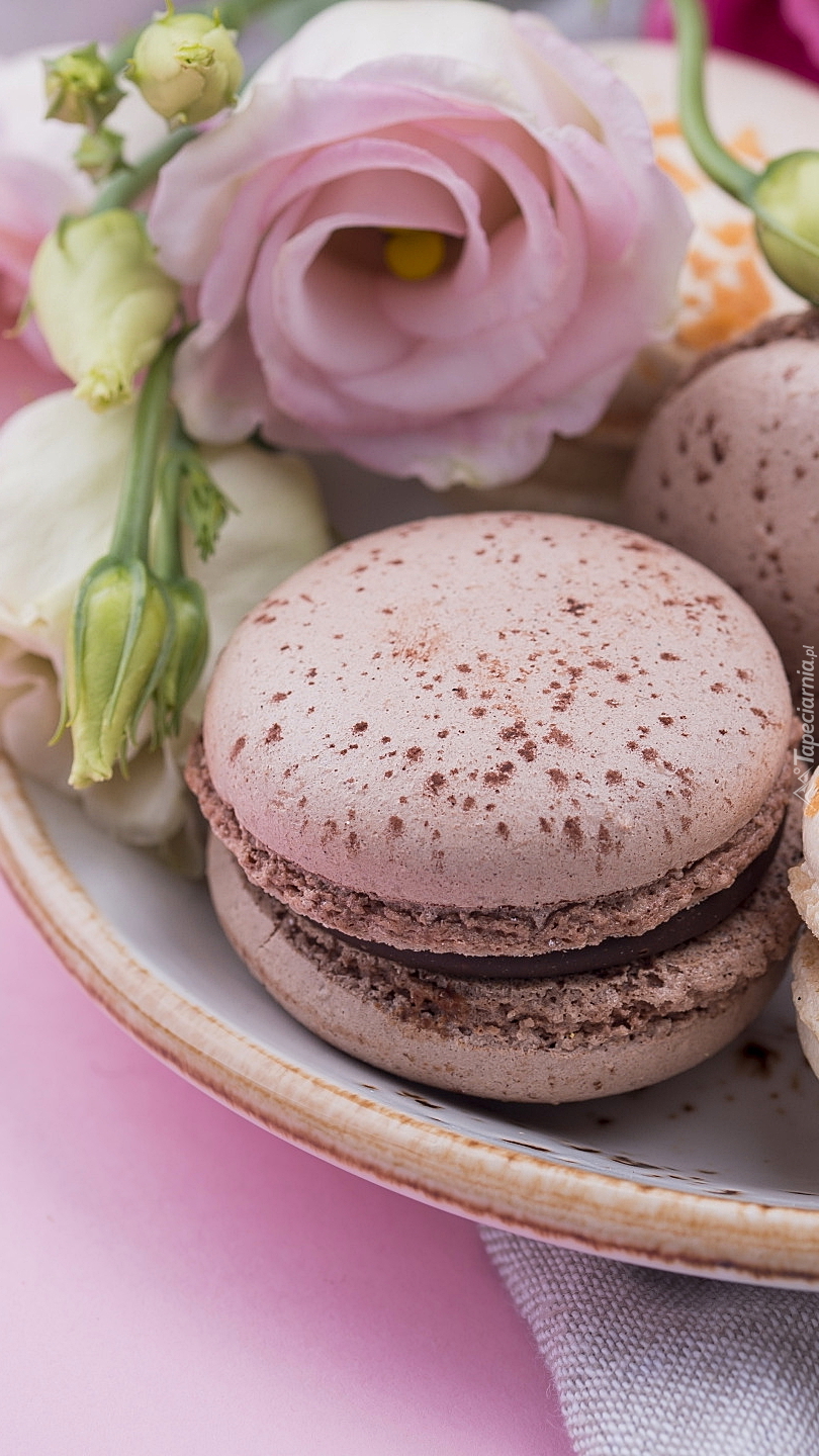 Edytor tapety: Ciasteczka makaroniki i kwiat eustomy