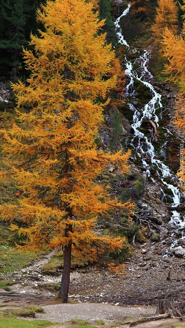 Edytor tapety: Jesienne drzewa przy wodospadzie