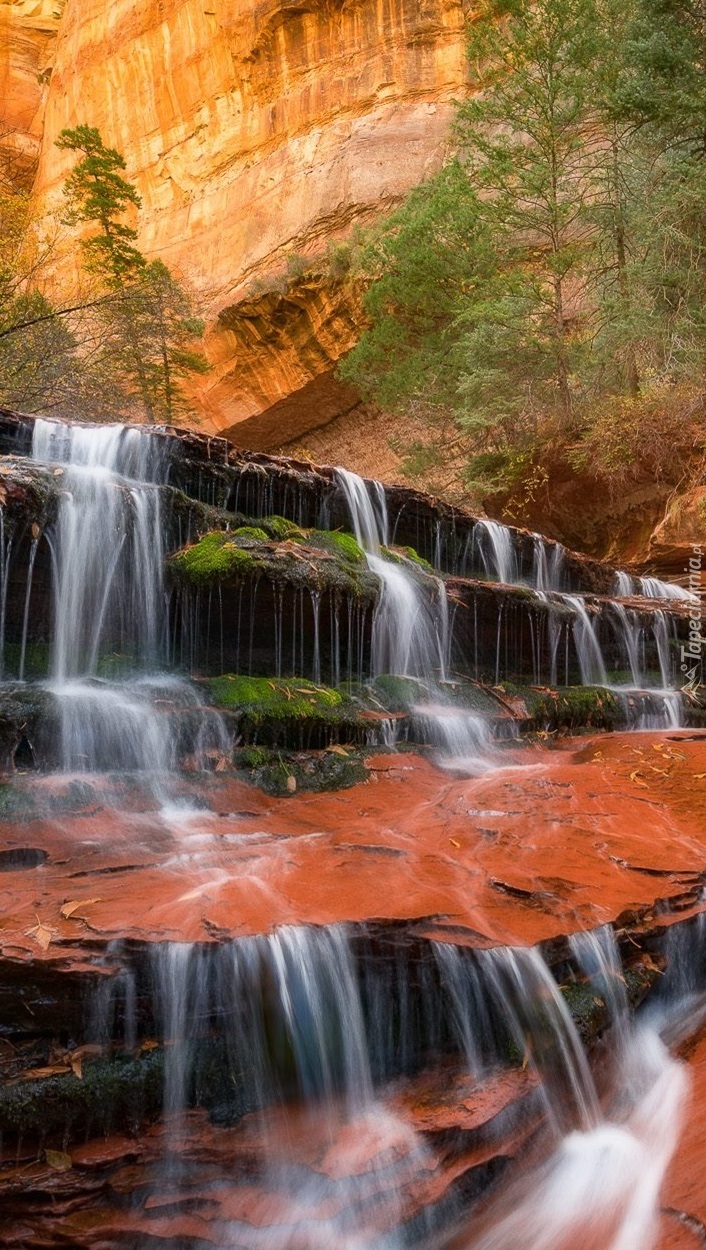 Edytor tapety: Wodospad na pomarańczowych skałach