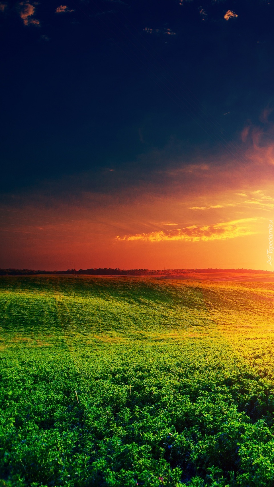 Edytor tapety: Promienie zachodzącego słońca nad polami