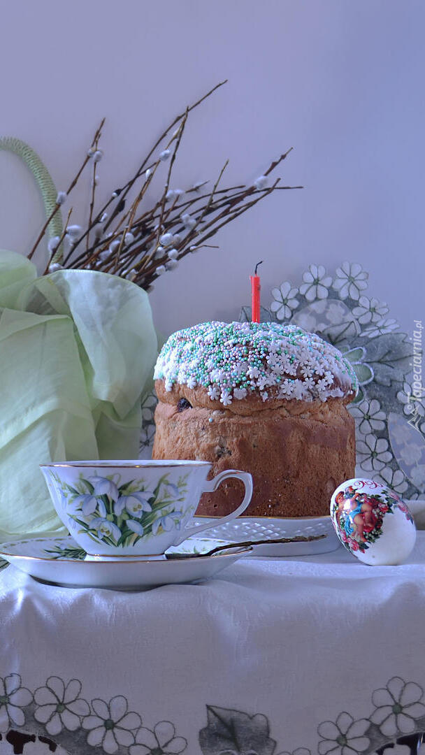 Edytor tapety: Kosz z baziami obok wielkanocnej babki
