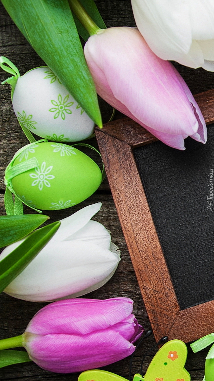 Edytor tapety: Tulipany i pisanki na ramce