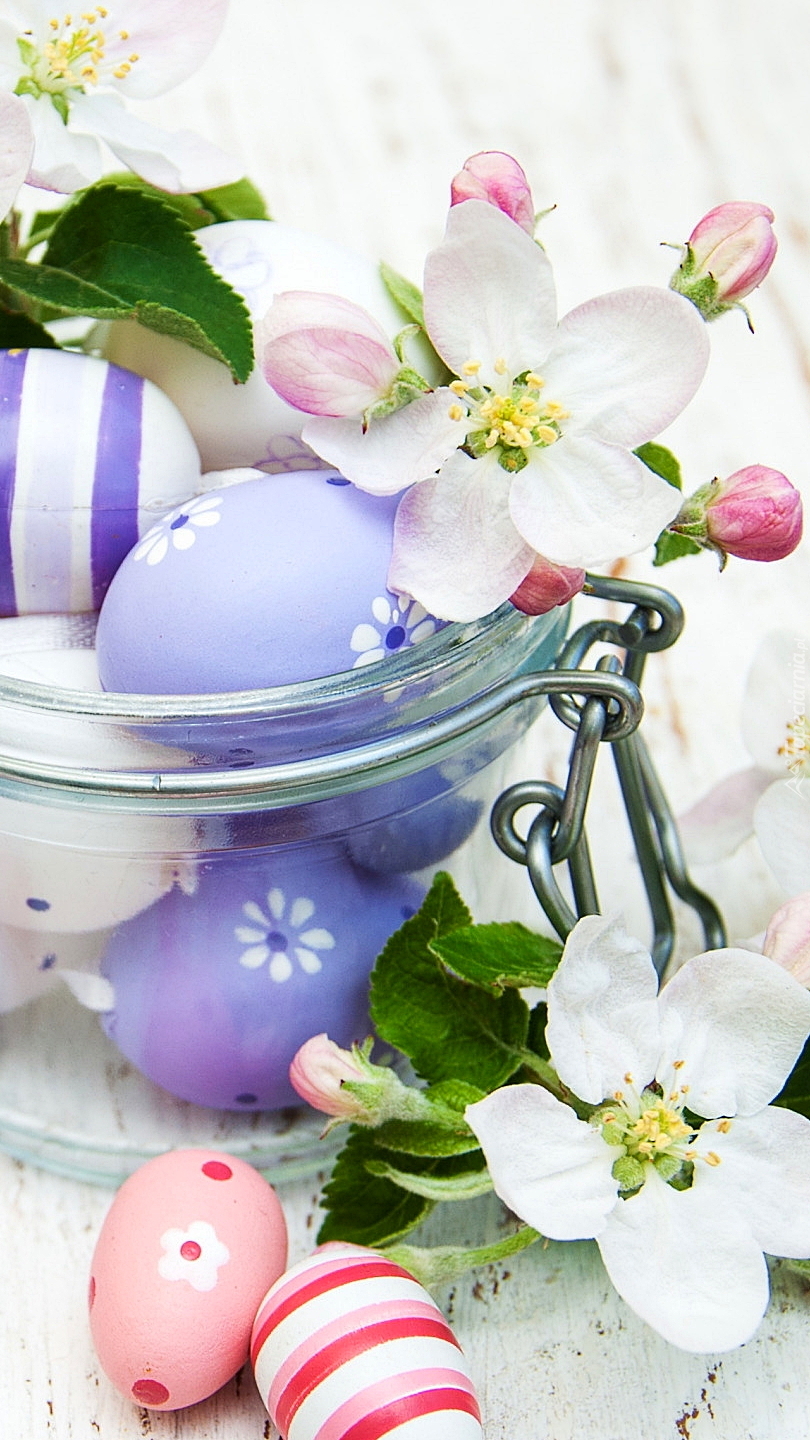 Edytor tapety: Pisanki i kwiatki w słoiku